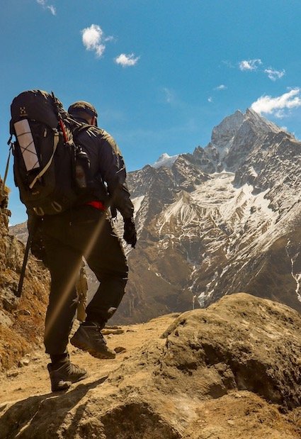 Välkommen till vandringen mot Everest Base Camp, med utsikt över djupa dalar, glittrande floder och Himalayas majestätiska toppar.