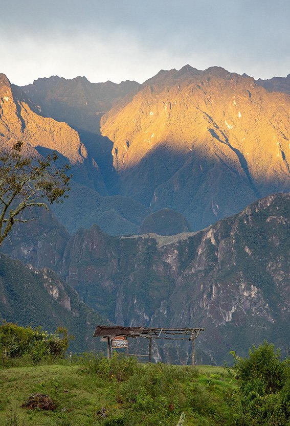 Det finns olika sätt att avnjuta en frukost. Vid klart väder har vi idag möjlighet att dricka morgonkaffet medan solen går upp ovanför Machu Picchu rakt framför oss. Det är nästan overkligt vackert. Dalarna och bergen är branta. Klippväggen med den osannolika Inkabryggan syns tydligt mitt i blickfånget och de välkända terrasserna i Machu Picchu rakt fram, mitt uppe på bergsryggen.