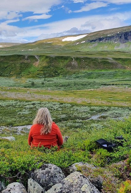 Idag är typiskt en sådan dag då det är lätt att falla in i så kallad fjällmeditation. Det uppstår då du vandrar behagligt, låter tankarna flyga iväg och blicken planlöst följa horisonten. Rekreation och vila på det bästa av sätt.